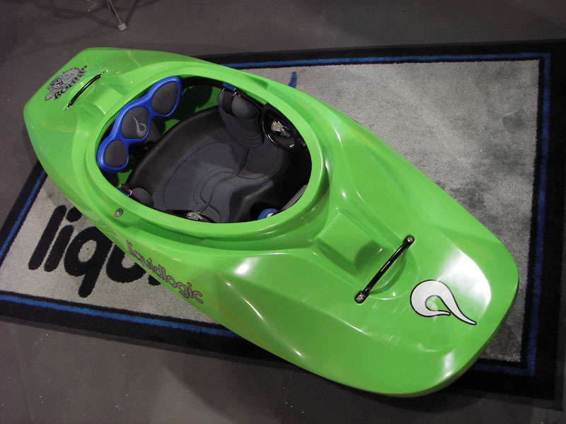 Liquid Logic Ronin - Liquid Logic brings some length and pop to their aerial line. The planing foot has been extended bow and aft to give more surface area for even bigger bounce and the decks have been sharpened up a bit edgewise as well. Width adjustments have been made for faster edge-to-edge transfer. Also, 5 boats were stolen from the outdoor demo here in Salt Lake City, so if your local kayak thief tries to sell you some suspicious looking Ronins, savagely beat the number for the police non-emergency into your cell phone and report them. Thank you.