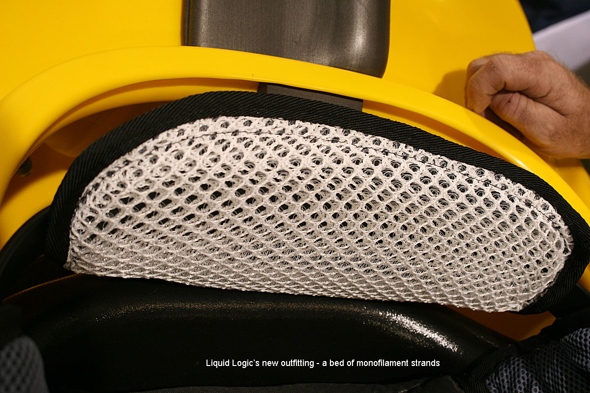 OUTFITTING . The new LL outfitting looks plush. Like a cross between a Barcalounger and a kayak seat, the monofilament padding has been borrowed from the automotive industry. Light, dry and adjustable, this will raise the bar considerably for other kayak manufacturers.