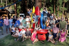 Back row: Peter Kettering, Graham Charles, Greg Davidson, Land Heflin, Rand Runco, Nick Bouwes, Doug Ammons, John Guerriere, Brooke McCaffrey, Johhnie Kern with Milo Kern, Pete Newport, Wally Macfarlane, Teo Campbell, Josh "Bones" Murphy, Brandon Knapp (behind Bones), Risa Shimoda, Annie Chamberlain with Elena, Todd Sherman, Jayson Bowerman, Dennise Gackstetter, Corey Neilson, Freddy Coriell (hiding), Aaron Tarnow, Melissa Newell Coriell. Bottom Row: Jed Weingarten, Whitney Lonsdale with Kaia, Ria Sribar, Willie Kern, Rok Sribar, Mark Hayden, Shuska Newport, Tracy Bowerman, Scott Lindgren, Amy Lundstrom with Calder, David Guth, Kelly Flynn. |